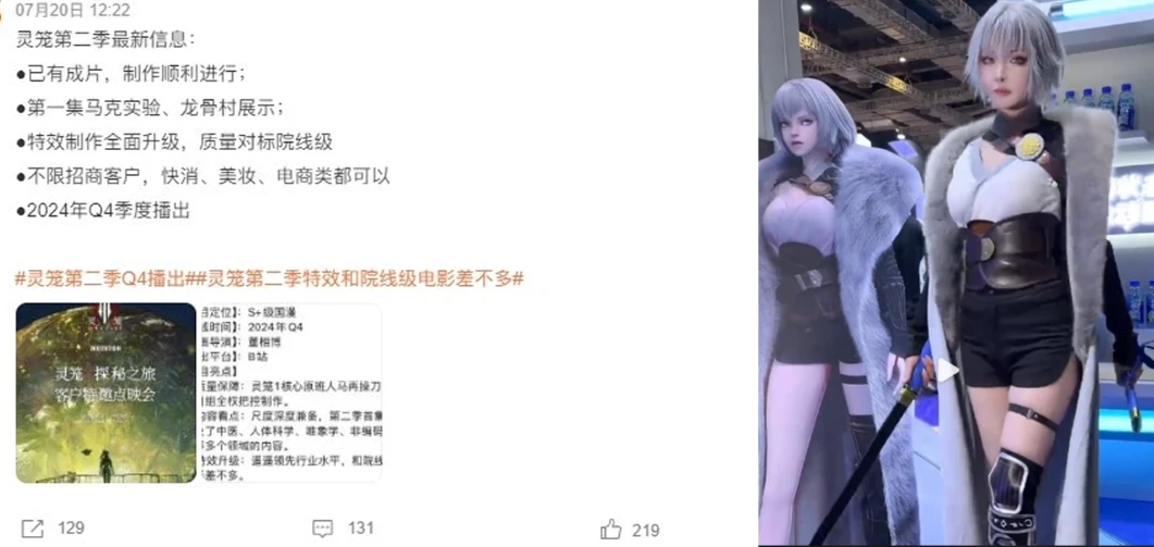 今年7月时有用户爆出《灵笼》开启线下招商会,同时BW展悄无声息的就出现了白月魁的身影,让不少用户欢呼雀跃认为第二季不远了。